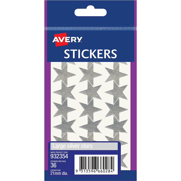 AVERY 932354 MERIT STAR STICKERS 21MM SILVER PACK 36