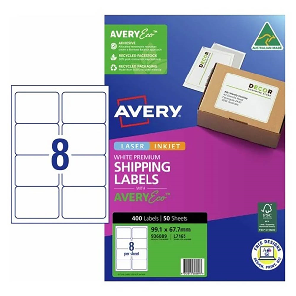 Inkjet label material is optimised for a smudge free professional finish Superior strong adhesive Customise your labels with our free and easy-to-use template software; Avery Design and Print - available at averyproducts.com.au/print Labels made with paper from sourced from sustainable forests