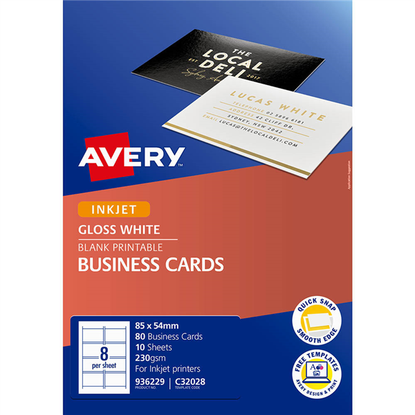 Make the right impression every time with Quick and Clean business cards that separate easily with clean edges to ensure you will stand out from the competition Easy design and printing - Use Avery design and print online Design and print your own business cards from your laser or inkjet printers while at home or office Clean, smooth edges for a professional finish Save money by only printing the number of cards you need Save your time by availing cards instantly Glossy Finish Card Material