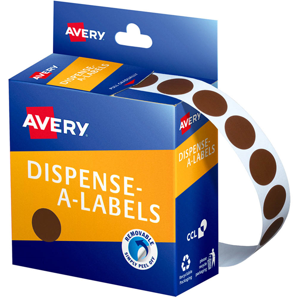 AVERY 937237 ROUND LABEL DISPENSER 14MM BROWN BOX 1050