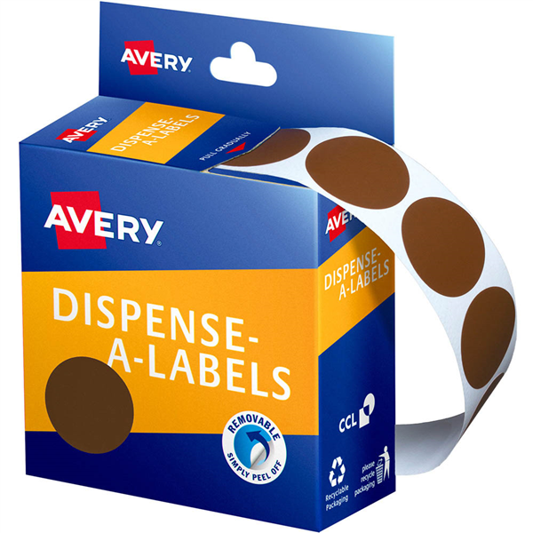 AVERY 937245 ROUND LABEL DISPENSER 24MM BROWN BOX 500