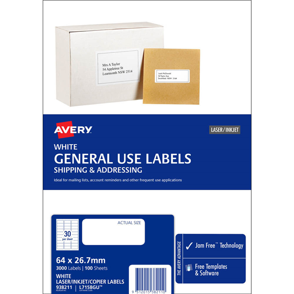 They can be used with black and white laser printers and copiers and also with all inkjet printers They deliver good quality results and it takes no time to design and print them using the free Avery software and templates Now supported by Microsoft Word and Avery software at www.averyproducts.com.au Now with Jam Free Technology for perfect labels every time Ideal for mailing lists, account reminders and other frequent use applications Suited to medium speed, black and white laser printers and photocopiers Labels made with paper from well-managed forests