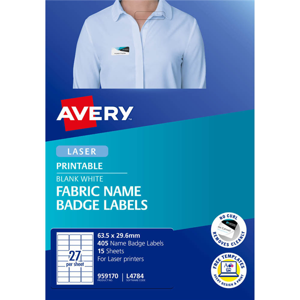 AVERY 959170 L4784 FABRIC NAME LABELS 27UP WHITE PACK 15