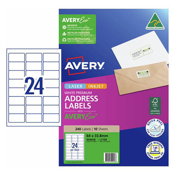 • Customise your labels with our free and easy-to-use template software; Avery Design and Print - available at averyproducts.com.au/print