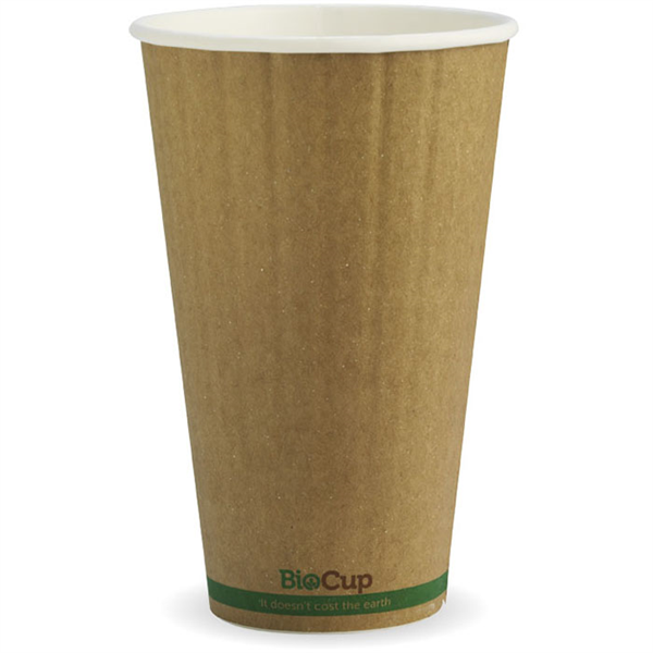 BIOPAK BIOCUP DOUBLE WALL CUP 510ML KRAFT GREEN STRIPE PACK 40