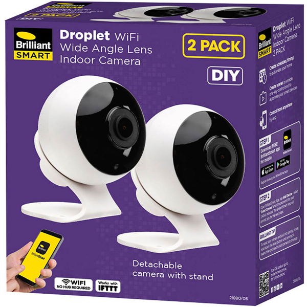 BRILLIANT SMART DROPLET WIFI 1080P WIDE INDOOR CAMERA WHITE PACK 2
