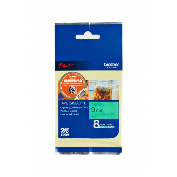 BROTHER M-721 NON LAMINATED LABELLING TAPE 9MM BLACK ON GREEN