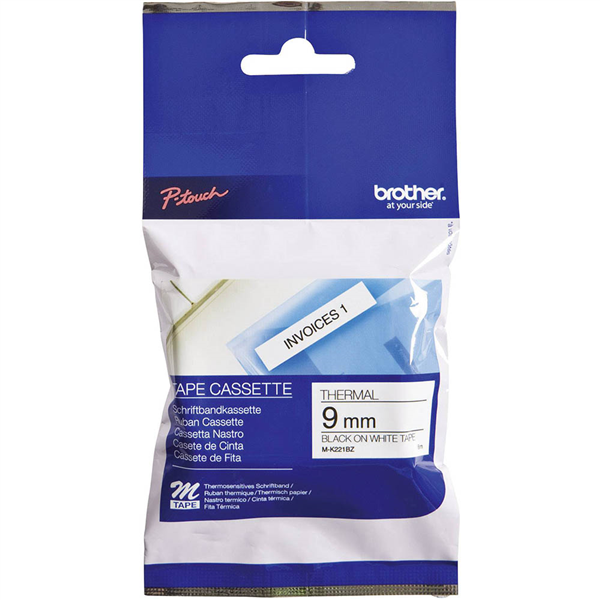 BROTHER M-K221 LAMINATED LABELLING TAPE 9MM BLACK ON WHITE
