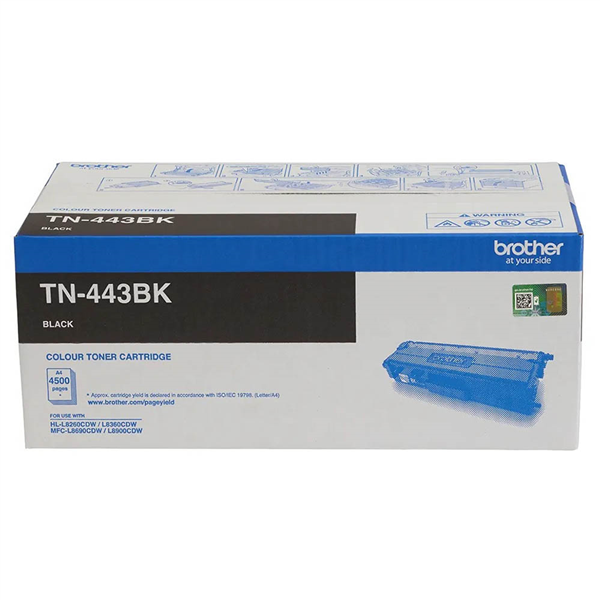 Consistent Quality Printouts - Experience consistently high-quality printouts with no streaking or smudging. Enjoy true-to-life images that can last for decades without fading SPECIFICATIONS Compatible with the following: BROTHER HL L8260CDW, BROTHER HL L8360CDW, BROTHER MFC L8690CDW, BROTHER MFC L8900CDW 4,500 Pages (estimated page yield provided based on 5% coverage or at ISO 2471 pattern/normal) Colour: Black OEM: TN-443BK UPC: 4977766772266