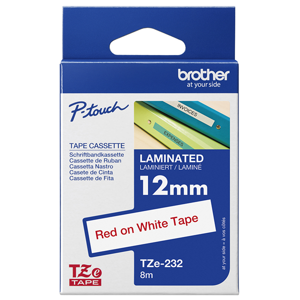 BROTHER TZE-232 LAMINATED LABELLING TAPE 12MM RED ON WHITE