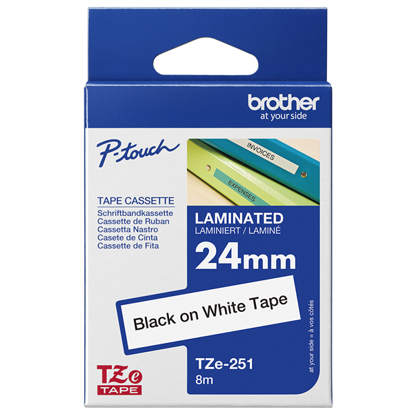 BROTHER TZE-251 LAMINATED LABELLING TAPE 24MM BLACK ON WHITE