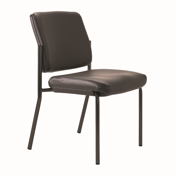 Featuring sleek lines and a black powder coated frame, this strong 4 leg chair is stackable and extremely comfortable It offers exceptional value and is an ideal choice for guest seating