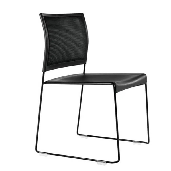 This sled base stacking chair is ideal for a variety of applications including conferences, meeting rooms or educational seating It's a robust all purpose chair It features black powder coated sled frame, strong polypropylene seat, breathable mesh back, linkable and stackable
