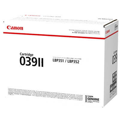 The right consumables give you the sharp results you expect from Canon Canon Inks and toners offer expanded colour reproduction and enhanced density, great for creative production SPECIFICATIONS Compatible with the following: CANON LBP351X, CANON LBP352X 25,000 Pages (estimated page yield provided based on 5% coverage or at ISO 2471 pattern/normal) Colour: Black OEM: CART039II UPC: 4549292031492