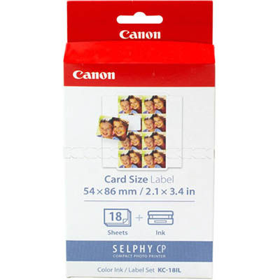 CANON KC-18IL SELPHY INK AND CARD LABELS 54 X 86MM WHITE 18 SHEETS