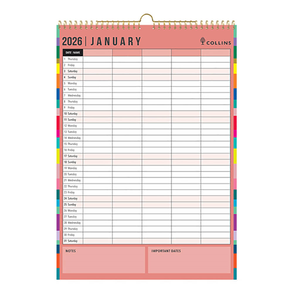 Keep the whole family organised and plan your time in style with the Collins Edge Rainbow Mira Family Wall Calendars
