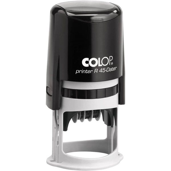 COLOP R45D CUSTOM MADE PRINTER SELF-INKING DATE STAMP 45MM DIAMETER