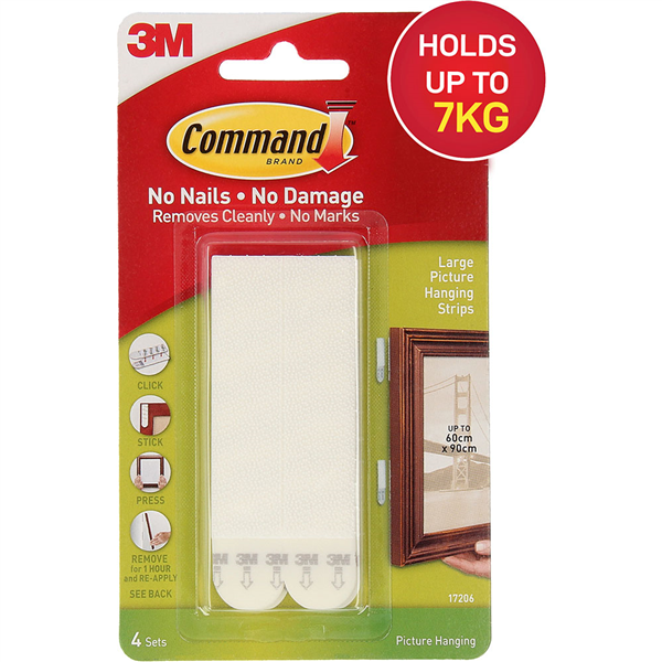COMMAND PICTURE HANGING STRIP LARGE WHITE PACK 4 PAIRS