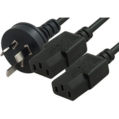 COMSOL MAINS OUTLET POWER SPLITTER CABLE 1 X 3PIN AUS MALE TO 2 X IEC-C13 FEMALE 2M BLACK