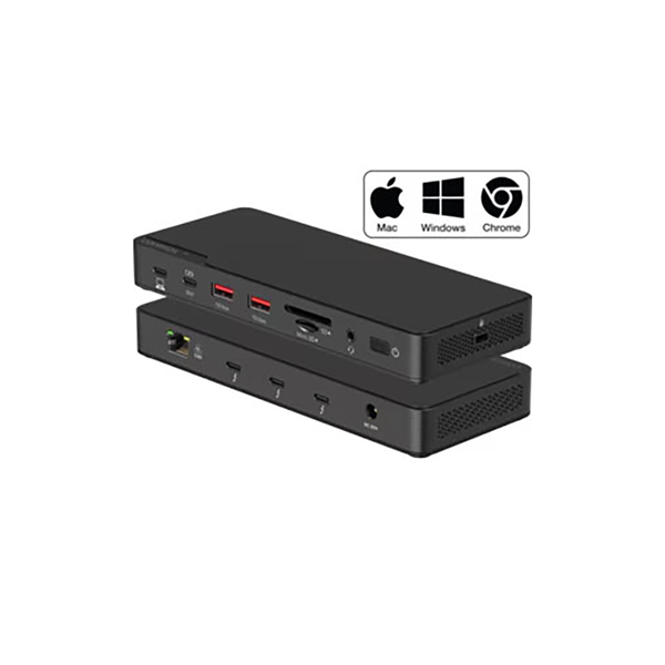It supports dual 4K monitor output via Thunderbolt 4 or USB-C, making it ideal for multitasking, video editing, and productivity workflows The dock features multiple ports including USB-A, USB-C, Ethernet, SD card reader, and audio jack, offering full expansion for modern laptops Thunderbolt 4 technology ensures ultra-fast data transfer, charging, and display capabilities all through a single cable With a sleek black finish and compact design, it fits seamlessly into any workspace setup