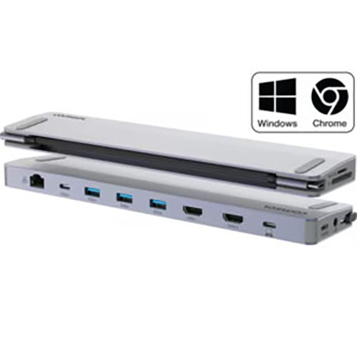 COMSOL USB-C DUAL HDMI MONITOR 12 PORT DOCKING STATION GREY