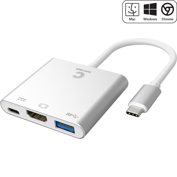 COMSOL USB-C MALE TO HDMI / USB 3.0 / USB-C ADAPTER SILVER