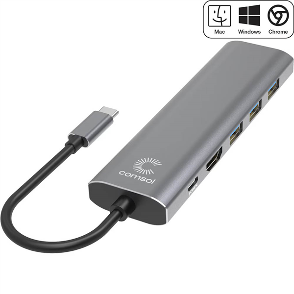 COMSOL USB-C MULTIPORT ADAPTER 4K HDMI WITH USB-C PD POWER BLACK