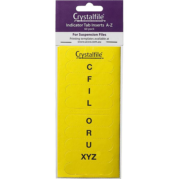 CRYSTALFILE INDICATOR TAB INSERTS A-Z YELLOW PACK 60