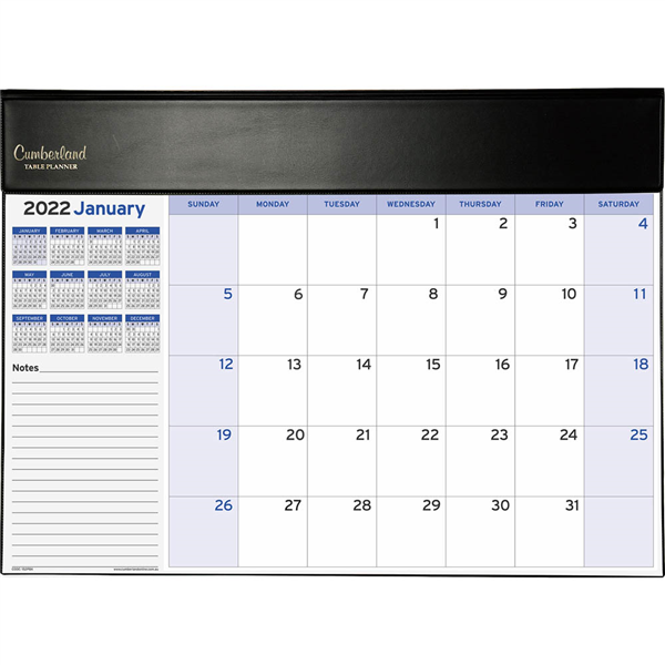 CUMBERLAND 2022 TABLE PLANNER MONTH TO VIEW 380 X 510MM BLACK