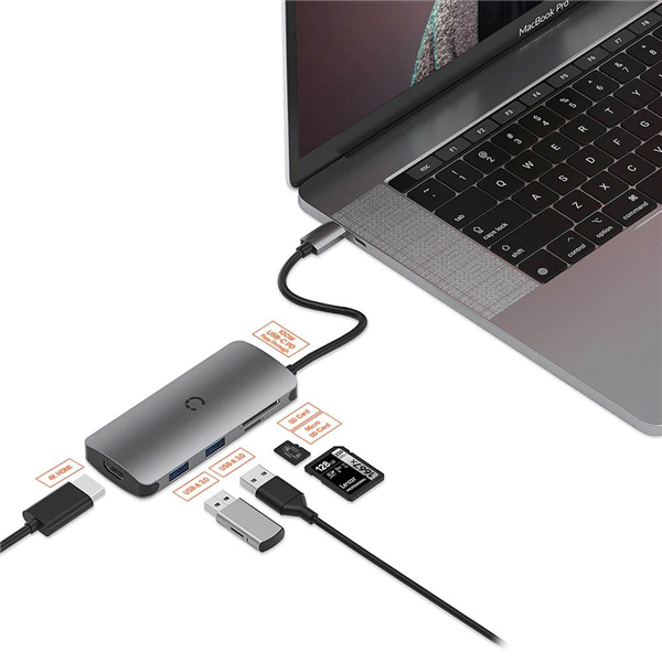 Features a 100W USB-C PD pass-through Port 2 x USB-A 3.0 ports 4K HDMI display port high-speed data transfer