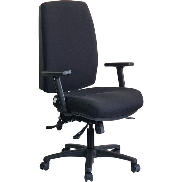 DAL ERGOSELECT STRIDE CHAIR EXTRA HIGH BACK BLACK NYLON BASE ADJUSTABLE ARMS LARGE SEAT FABRIC BLACK