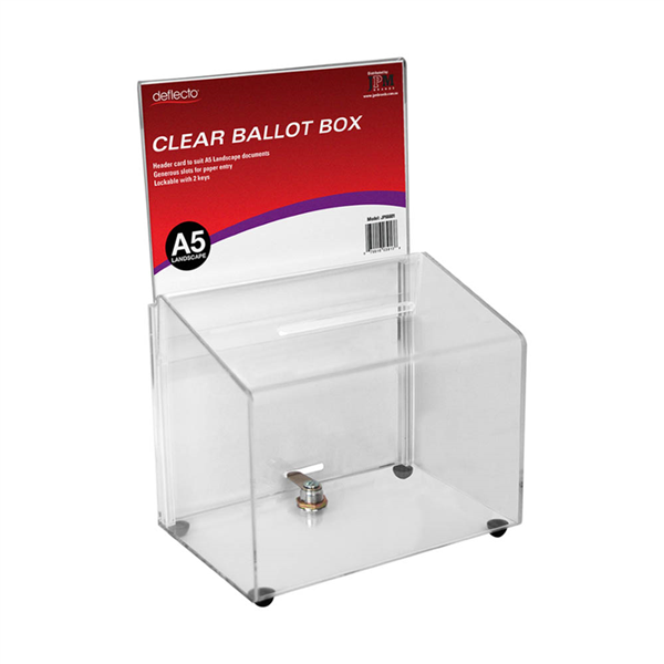 DEFLECTO BALLOT BOX LOCKABLE WITH HEADER LANDSCAPE A5 CLEAR