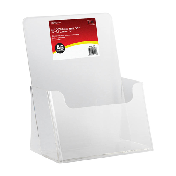 DEFLECTO BROCHURE HOLDER EXTRA CAPACITY FREE-STANDING A5 CLEAR
