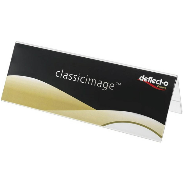 DEFLECTO DESK TENT STYLE SIGN HOLDER FOLDED LANDSCAPE A4 CLEAR