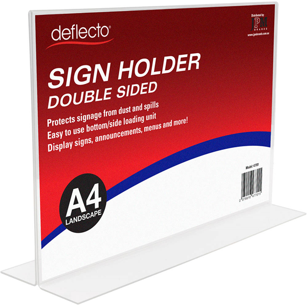 DEFLECTO SIGN HOLDER T-SHAPE DOUBLE SIDED LANDSCAPE A4 CLEAR