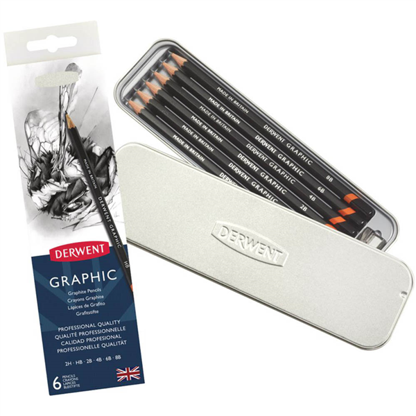 With Derwent Graphic you've got a wide choice of degrees from a fine and crisp 9H to soft and smudgy 9B, so whether you are doing fine detailed illustrations or adding shading and texture to your drawing Derwent has the right pencil for you! Lovely compact tin containing six high quality graphite pencils together with a free superior quality pencil sharpener Made from the finest quality material Strips sharpen to a good long-lasting point Bonus pencil sharpener