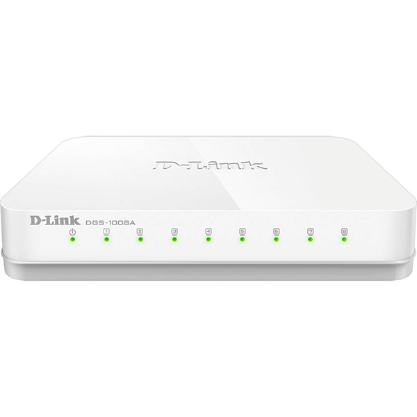 8 high-speed Gigabit ports Compact design for convenient placement Fanless design for silent operation Innovative D-Link Green energy saving features Environment Friendly- The 8-Port Gigabit Easy Desktop Switch was designed with the environment in mind, and is compliant with Energy Star Level V, as well as with the stringent CEC and MEPS regulations that require the use of energy efficient power adapters. The switch is also built to follow RoHS standards to minimize use of hazardous materials, and uses recyclable packaging that helps reduce waste, complying with the WEEE directive Fast and Reliable Networking- The D-Link DGS-1008A 8-Port Gigabit Easy Desktop Switch creates a blazing fast network for your office, as its Gigabit Ethernet ports provide high-speed wired connections for up to eight PCs or other devices. The DGS-1008A also features QoS, which prioritizes network traffic so that time-sensitive data is delivered efficiently, even during bursts of high data traffic