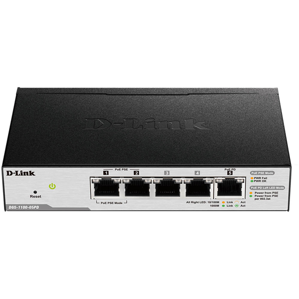 D-LINK DGS-1100-05PD SMART SWITCH 5 PORT GIGABIT MANAGED WITH POE EXTENDER BLACK/ SILVER