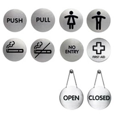 Durable high quality brushed stainless steel pictograms impresses with their simplicity. Pictograms can be secured to a variety of surfaces using adhesive pads supplied.