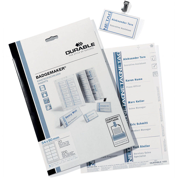 DURABLE BADGEMAKER NAME BADGE INSERTS 54 X 90MM PACK 200