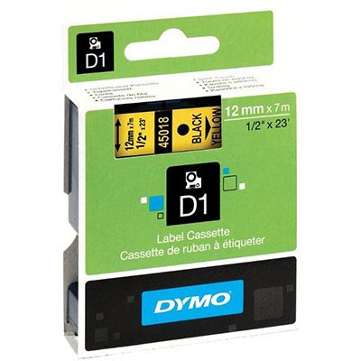 DYMO 45018 D1 LABELLING TAPE 12MM X 7M BLACK ON YELLOW