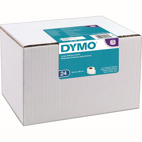 DYMO 99012 LW ADDRESS LABELS 89 X 36MM WHITE ROLL 260 BOX 24