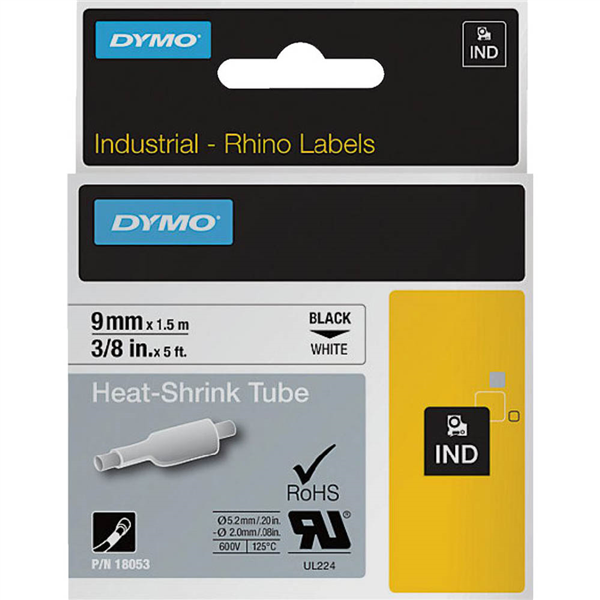 DYMO INDUSTRIAL Heat-Shrink Tube labels offer the convenience of printing directly on the tubing itself with any DYMO Industrial labeling tool for high-end cable identification Meets MIL-M-81531, MIL-STD-22G, SAE-DTL-2353/5 (Class 1&3) UL recognized as a component to UL 224 RoHS compliant Temperature Rating -19C to +135C