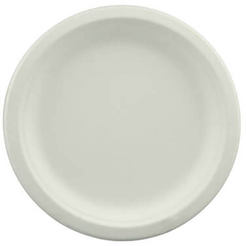 • Round 9 inch plate made of sugarcane bagasse, a 100% renewable material