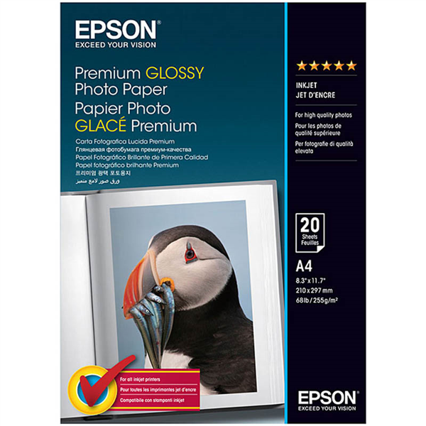 EPSON S041287 PREMIUM GLOSSY PHOTO PAPER A4 WHITE PACK 20