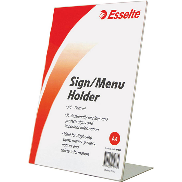 ESSELTE SIGN / MENU HOLDER SLANTED PORTRAIT A4 CLEAR