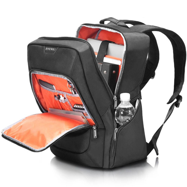The Advance series of bags is EVERKI's simple and straightforward solution for the mobile professional. The Advance series offers all the options you need in a laptop bag - space for your laptop and tablet, a trolley handle pass-through, and plenty of slots and pockets for pens, business cards and accessories - and nothing you don't need. The understated professional look of these bags make them an ideal choice for the office, while the durable materials and lightweight construction can stand up to the rigors of your daily commute Practical and functional backpack for everyday use. A no-nonsense bag with everything you'll need to organize and carry your business accoutrement. There's a dedicated laptop pocket that fits up to a 15.6-inch laptop, and a dedicated slot for your iPad/Pro/Kindle/tablet. The well-padded straps are easy to adjust, and the back of the bag features a trolley handle pass-through for added ease when you're traveling with many bags. You can efficiently organize all of your things for quick retrieval when you utilize the quick-access pocket, the multi-use side pockets and the hidden stash pocket. The Advance Laptop Backpack - built to function Secretly tucked away in the back of the bag is a hidden stash pocket in which you can keep your sensitive items like a passport and credit cards safely stored. Plus, you can access the pocket without removing the bag from your shoulder. Now that's clever When traveling with many bags, the trolley handle pass-through on the back of the Advance allows you to double your efforts. Simply slip the Advance onto the handle of your luggage and you're ready to wheel through the airport The two side pockets on the Advance allow you to safely secure your water bottle, or conveniently store accessories such as chargers and adapters. Plus, they're fully zippered to maintain a sleek and sophisticated profile All EVERKI interiors are stylish, high-contrast orange because we know how frustrating it is to mistakenly leave a compartment unzipped, and how difficult it is to organize against a black background. Savvy and Stylish Dedicated pockets for 15.6-inch laptop and iPad/Pro/Kindle/tablet Spacious, well-organized compartments Ergonomic shoulder straps Hidden stash pocket Trolley handle pass-through Quick-access pocket