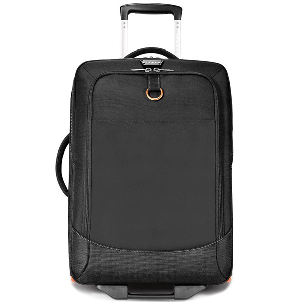 A Trolley Large Enough to Carry an 18.4-inch Laptop! If youre looking for a rolling solution for an 18.4-inch laptop, youve found it in the Titan Laptop Trolley. Because a large laptop may be difficult to travel with - Everk designed the Titan Trolley to fit the most beefy laptop, with the ease and agility of a trolley, and is sleek enough to carry on board. With places to put all your peripherals, and Eve signature orange interior, youll be able to find them easily and quickly - even in a dimly lit cabin. Plus, with the Titan Trolley, the bag will pass through security quickly and easily with its removable laptop sleeve