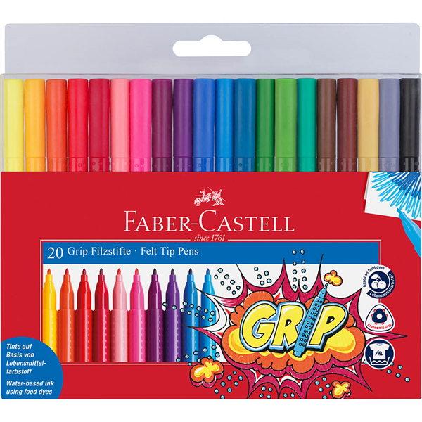 FABER-CASTELL GRIP FELT TIP MARKERS ASSORTED PACK 20
