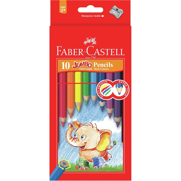 FABER-CASTELL JUNIOR COLOURED PENCILS FULL LENGTH WITH SHARPENER ASSORTED PACK 10